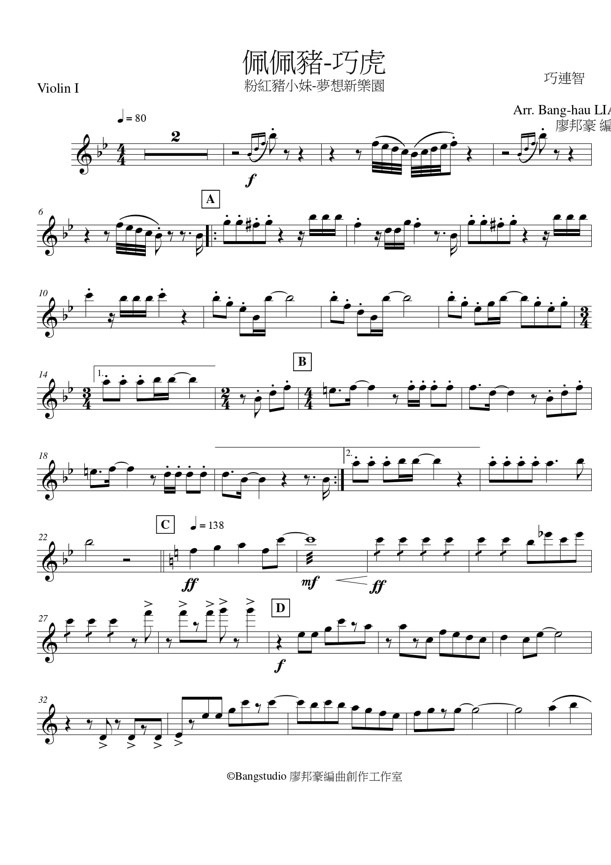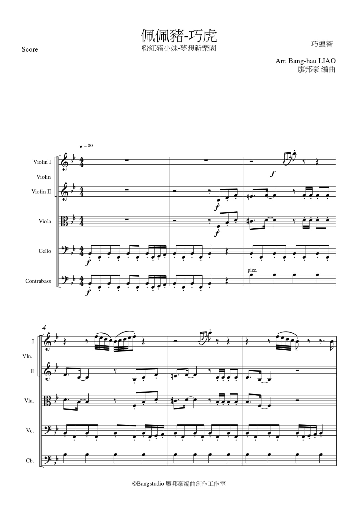 Violin I / Violin II / Viola / Cello / Contrabass