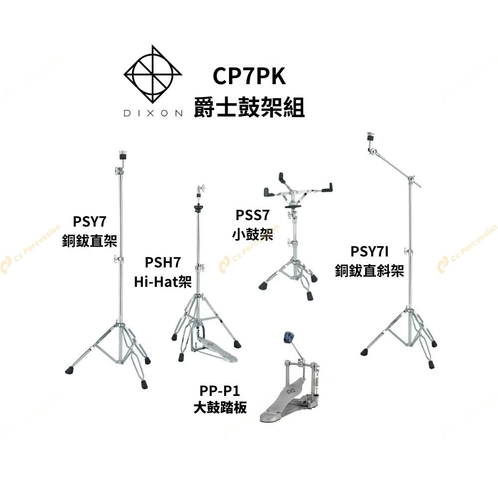 此商品包含: PSY7 銅鈸直架 PSH7 Hi-hat架 PSS7 小鼓架 PSY7I 銅鈸直斜架 PP-P1 大鼓踏板