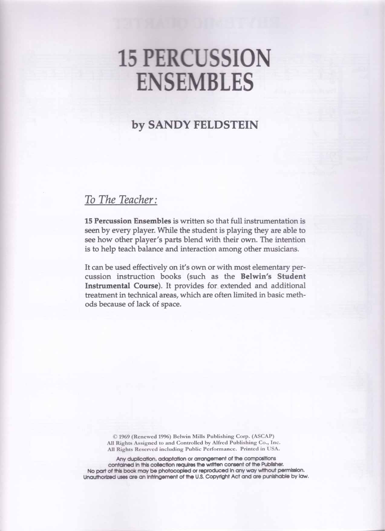 這是一本適合剛入門學生至初學者等級,共計15首的打擊樂重奏合集,只有總譜。
